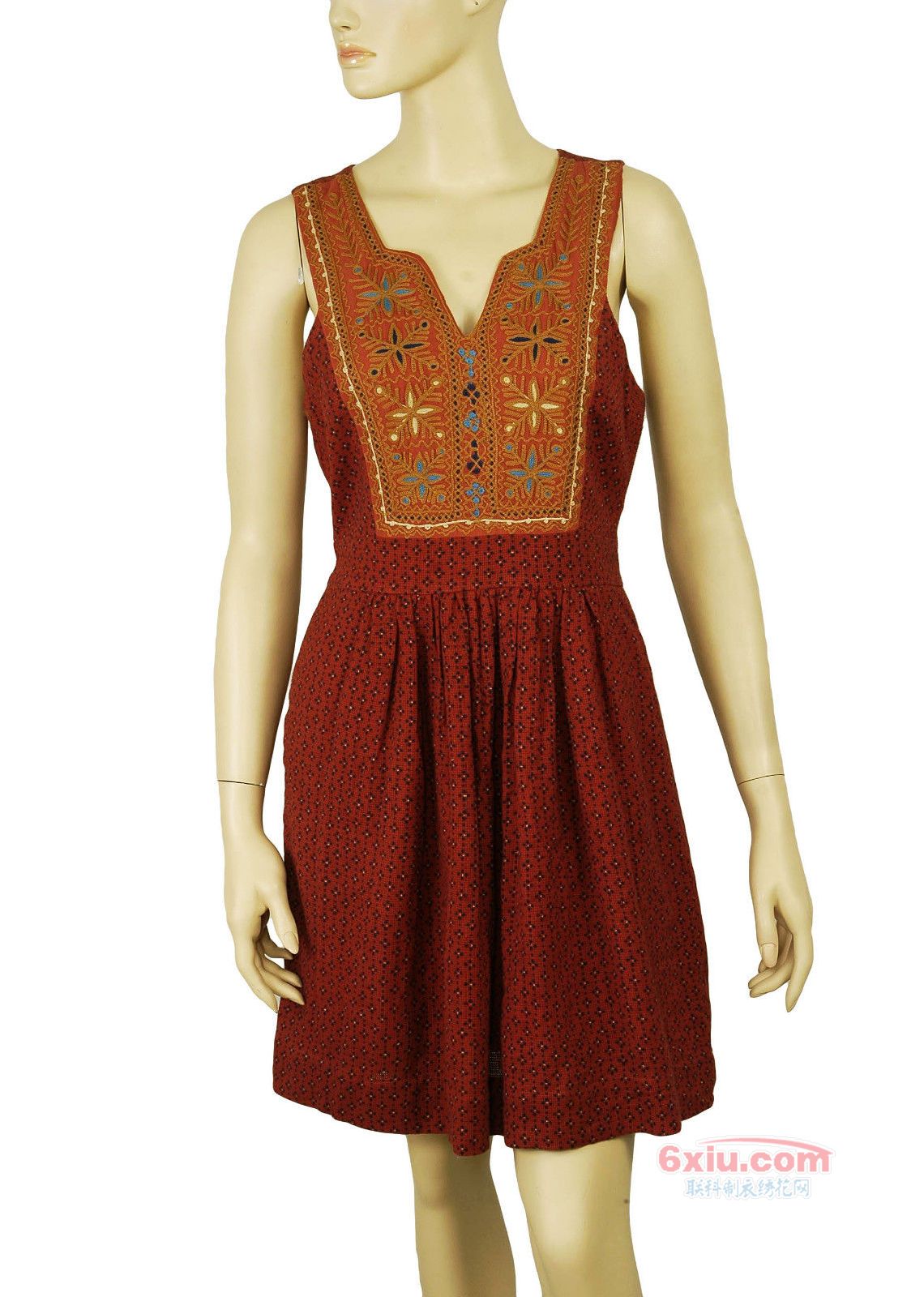小花朵衣领裙摆