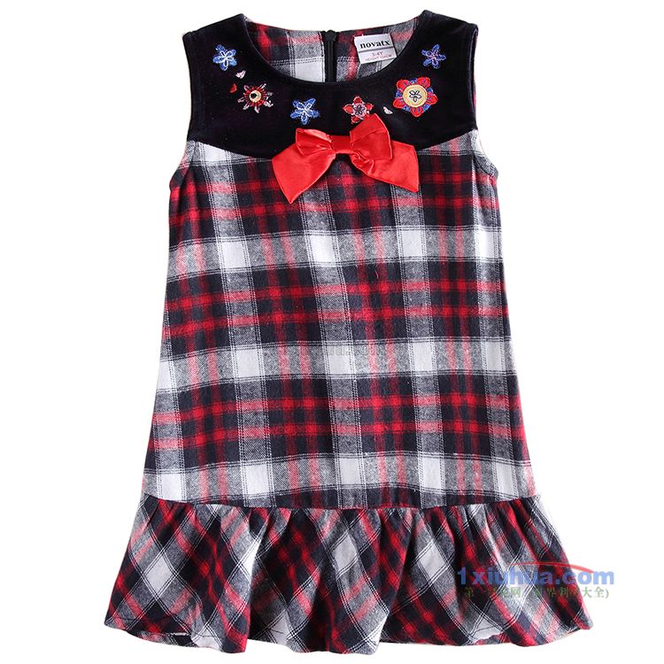 格子前胸刺绣