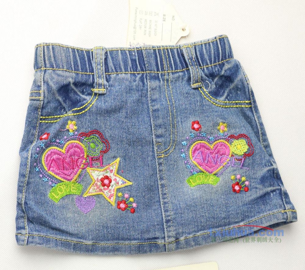 编号:心形五角星贴布牛仔裤